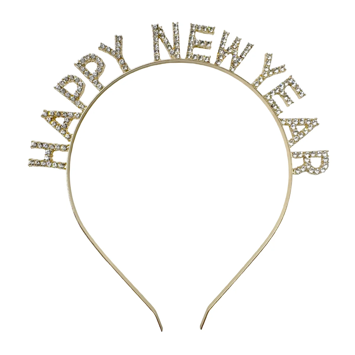 Bring some sparkle into your new years ensemble with this gorgeous gold toned headband. This headband features the words ‘Happy New Year’ encrusted in sparkling diamante crystals for added glam to any new years outfit.
