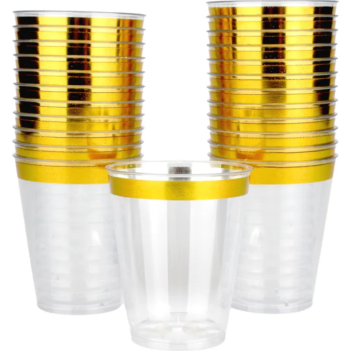 Pack of 24 Gold Plastic Shot Glasses.