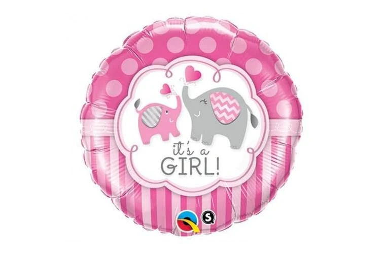 1 x It’s a Girl! Pink Elephant Foil Balloon. Measurements: 18 inch / 45.7 cm. Balloons can be filled with air or helium. Balloons are not prefilled with air or helium. Our Belmore Store can provide Helium.