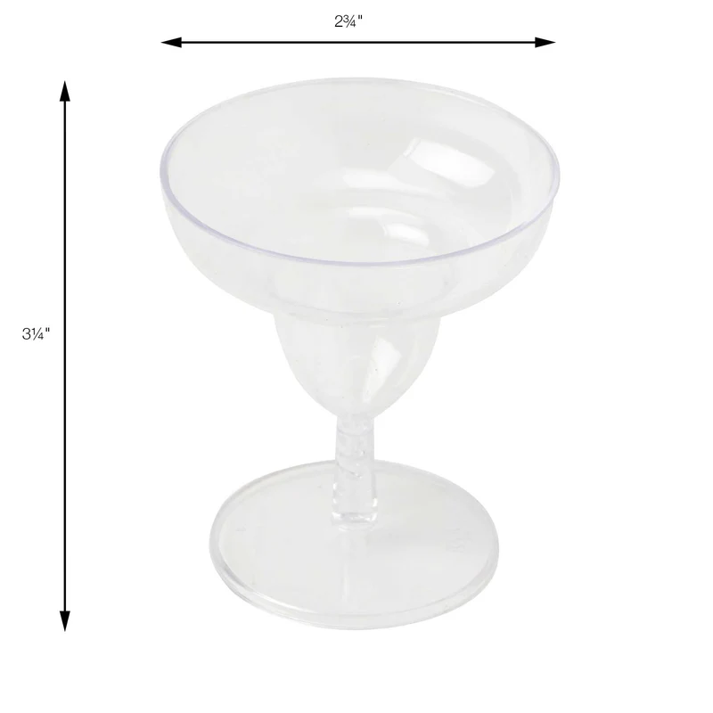 These mini margarita glass glasses are perfect for adding some Mexican flair, small appetizers or tastings at your Fiesta themed party or food festival event – use them to serve mini slushy margaritas, salsa, dip, granitas, gazpacho and more.