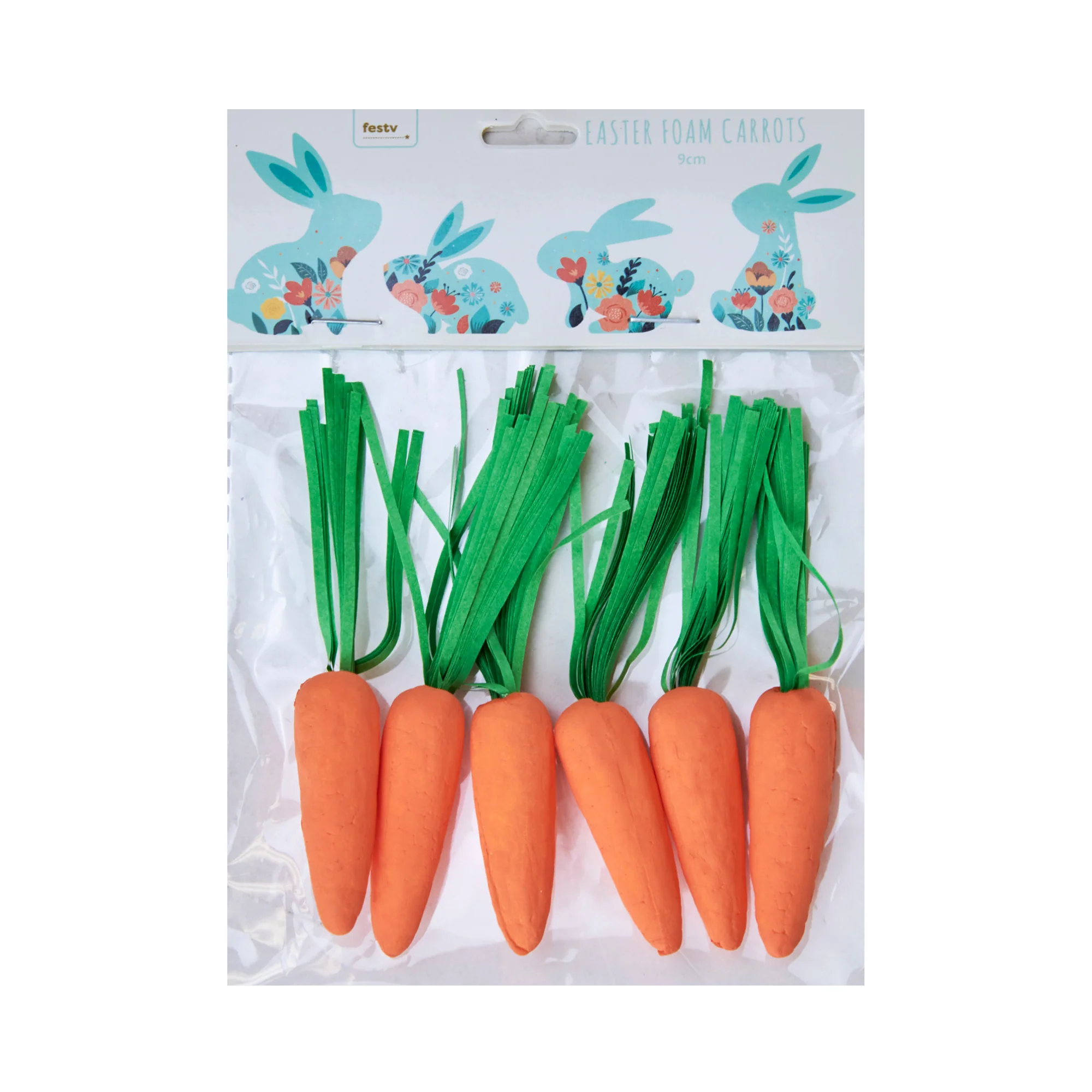 Pack of 6 Foam Mini Orange Carrot Decorations.