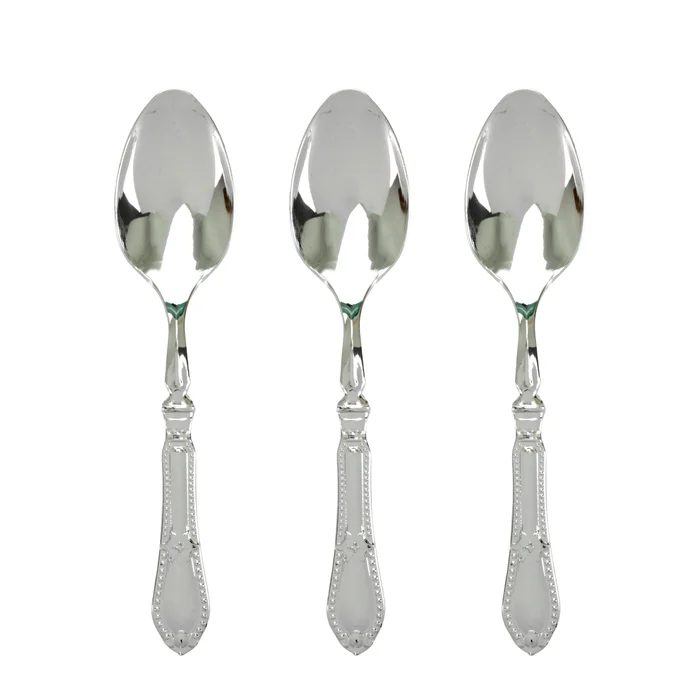 Ideal for elegant events such as weddings, high teas, holiday gatherings, or any occasion where you aim to impress, these Vintage Silver Reusable Spoons combine style with convenience, ensuring your table settings are both elegant and practical.